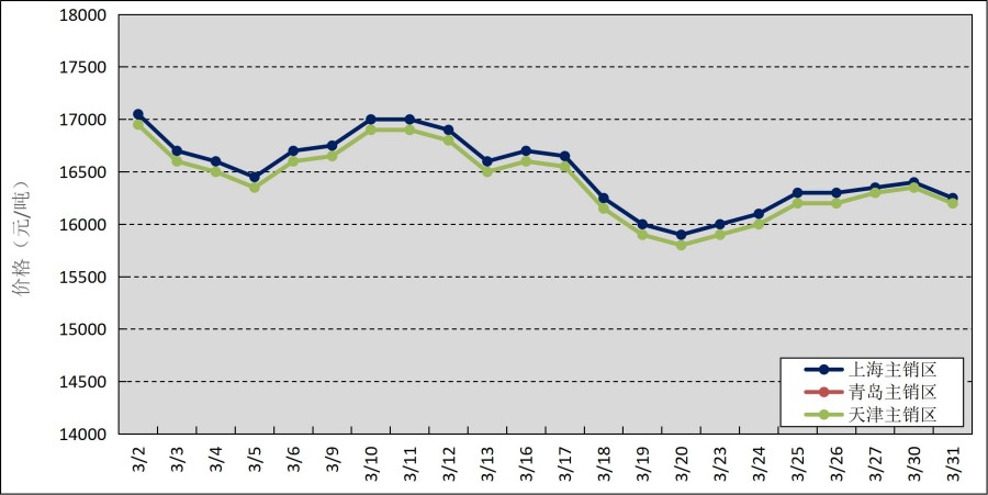 圖2 2026年3月國內(nèi)主銷區(qū)天然橡膠價(jià)格走勢