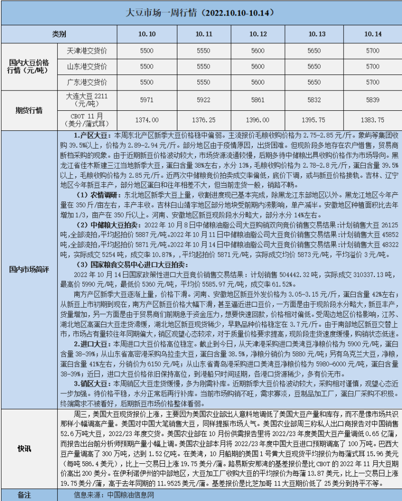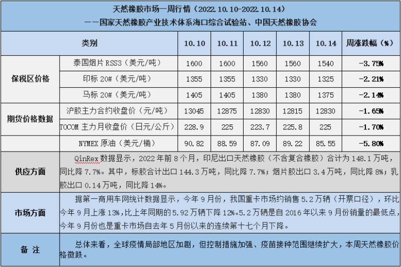 天然橡膠、大豆、玉米市場(chǎng)一周行情(2022.10.10-10.14)