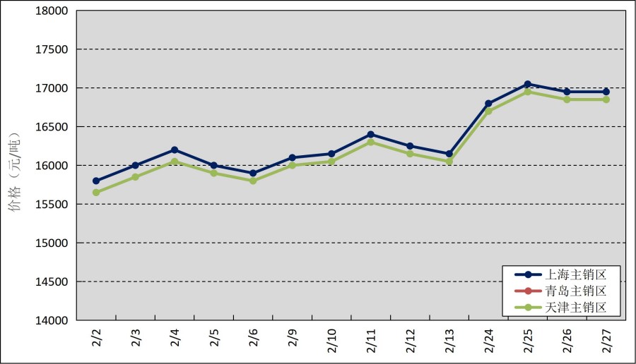 國內(nèi)主銷區(qū):2月,國產(chǎn)全乳標(biāo)準(zhǔn)膠價格呈波動上行態(tài)勢。其中,上海市場平均價格16336元/噸,環(huán)比增加543/噸,最高價17050元/噸,最低價15800元/噸;青島市場平均價格16225元/噸,環(huán)比增加533元/噸,最高價16950元/噸,最低價15650元/噸;天津市場平均價格16225元/噸,環(huán)比增加525元/噸,最高價16950元/噸,最低價15650元/噸。