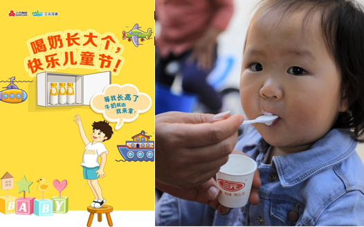 三元食品推出“喝奶長大個,快樂兒童節(jié)”專屬節(jié)日海報,從奶箱中取奶這個百姓熟悉的環(huán)節(jié)入手,由圖中小朋友說出了“等我長高了,牛奶就由我來拿”的美好愿望。
