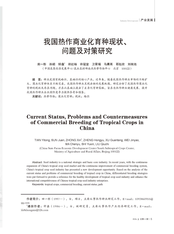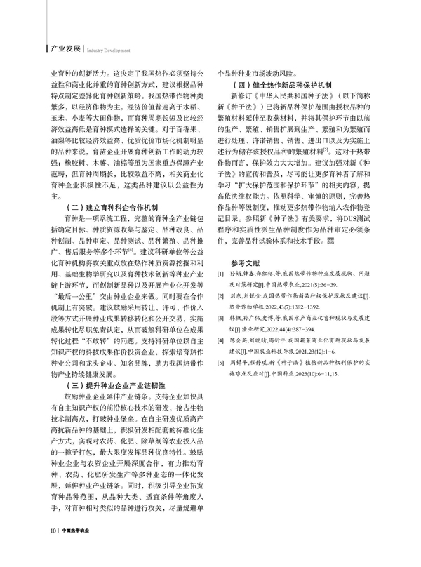 我國(guó)熱作商業(yè)化育種現(xiàn)狀、問題及對(duì)策研究